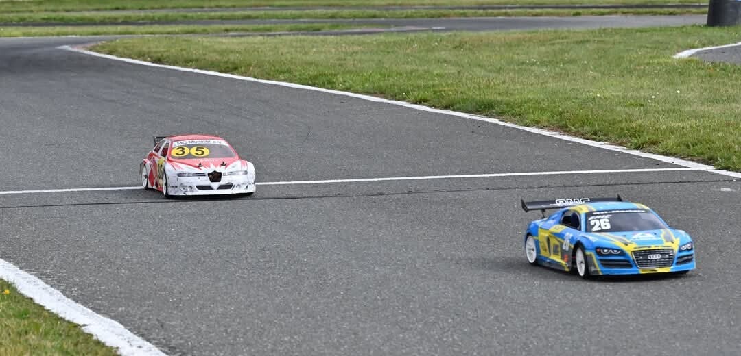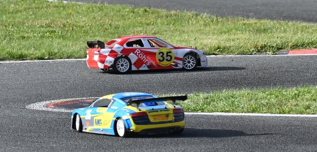 Wir fahren fast ausschließlich On-Road Fahrzeuge im Maßstab 1:5, 1:8 und 1:10. Hauptsächlich mit Verbrennungsmotoren, aber auch Elektromotoren.